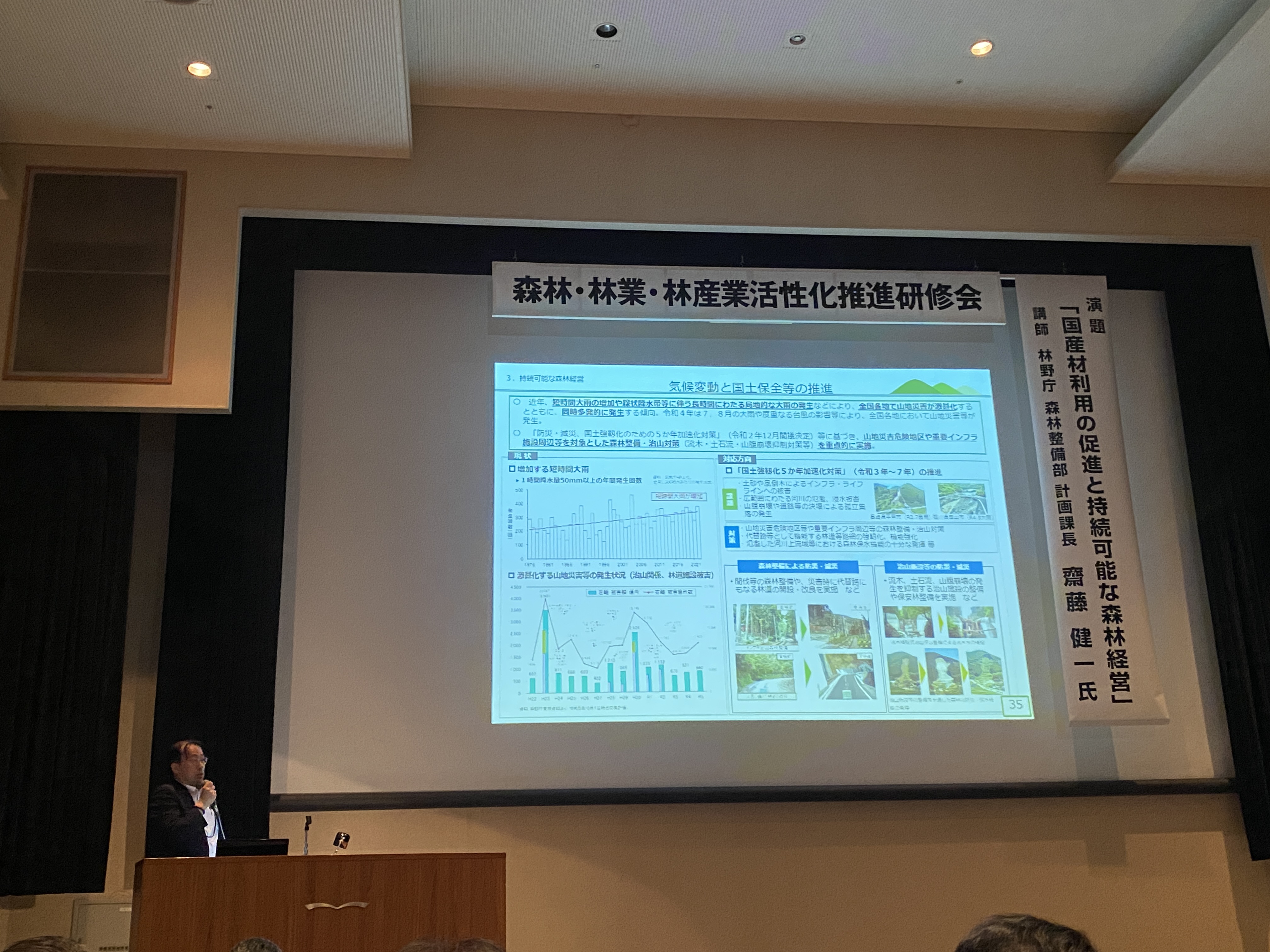 木材を使用した高層建築の動向や外材が主流となり国産材を扱わなくなったことによる工務店との繋がりの希薄化を元に戻すための努力、全国森林計画や国産材ニーズの高まりや森林資源のフル活用など森林関連産業情報のアップデートができるご講演だったと思います。ありがたい機会でした。