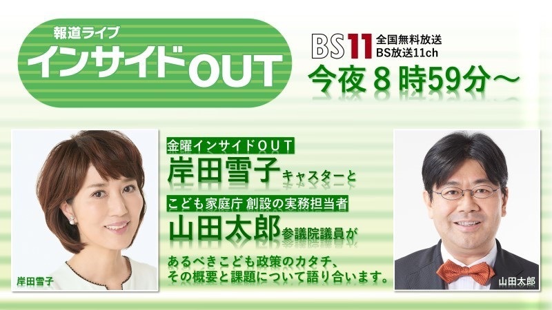 ホーム>政党・政治家>山田 太郎 (ヤマダ タロウ)>【メディア出演】BS11『報道ライブインサイドOUT』に出演