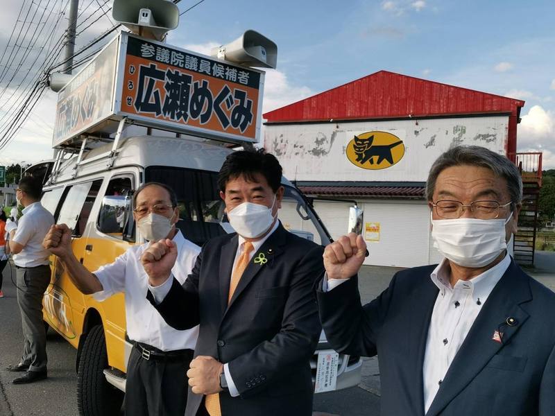 ホーム>政党・政治家>神﨑 ひろゆき (カンザキ ヒロユキ)>【広瀬めぐみ街頭】花泉町 左から、地元の佐藤敬一郎市議、私、一戸町から仲間の自民党山下県議と。