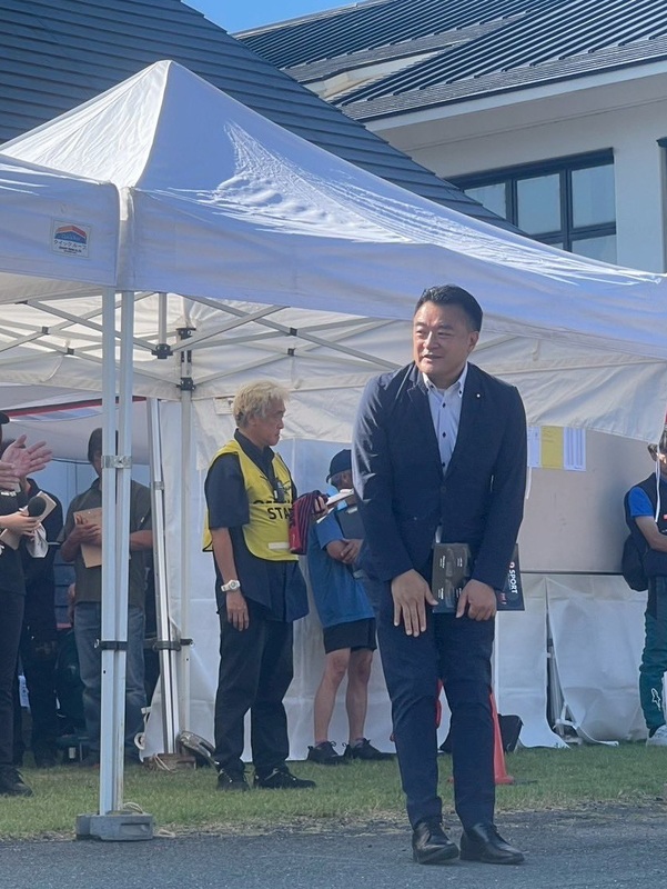 少し前に大雨で、リエゾンに使う予定の道路が崩れてしまい、どうなることかと思いましたが、国・県・市の担当者が頑張ってくれて、まずは今回通れるように、そしてレースの後には本格的に復旧するように段取りできました。