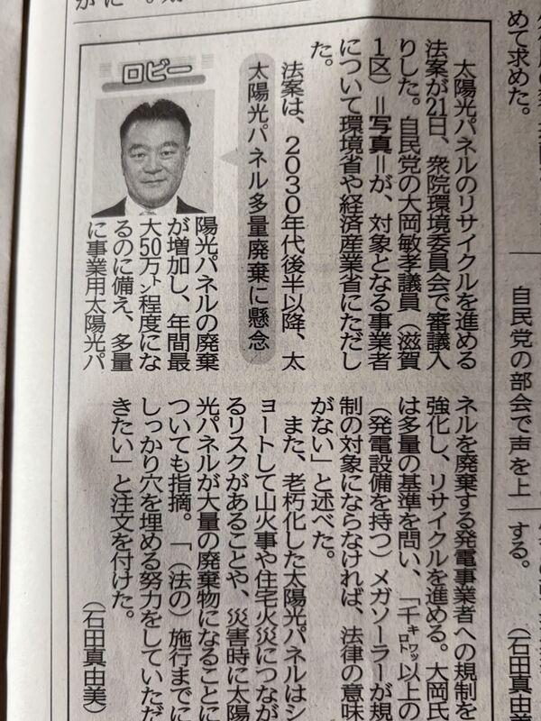 ホーム>政党・政治家>大岡 としたか (オオオカ トシタカ)>昨日、衆議院環境委員会にて質問に立ちました!本日の京都新聞で取り上げてられております。