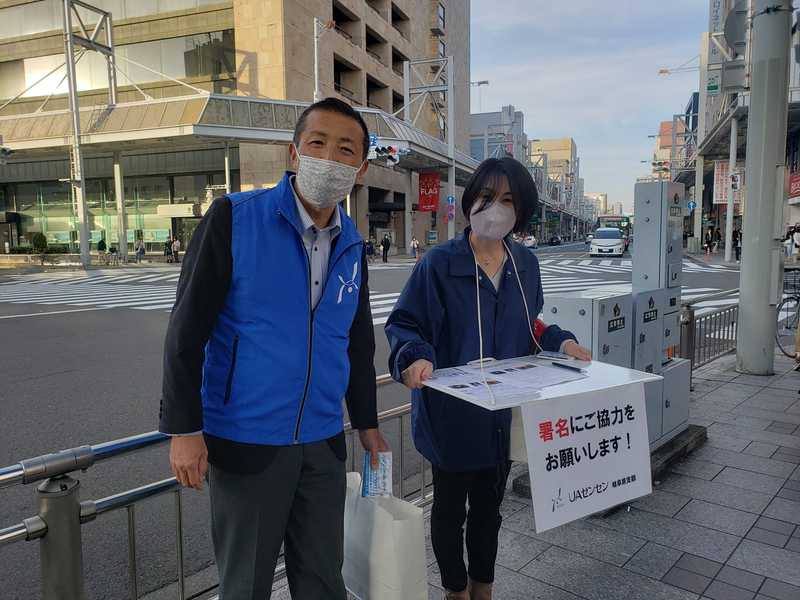 「北朝鮮による拉致被害者家族支援」街頭署名活動。