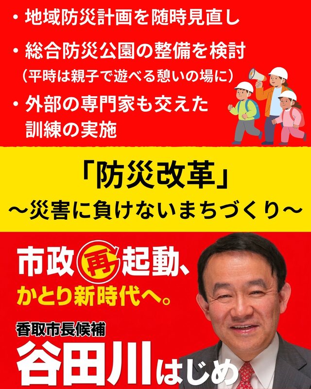 市民の皆さんの命を守る!そのための「香取防災改革」を実行します!