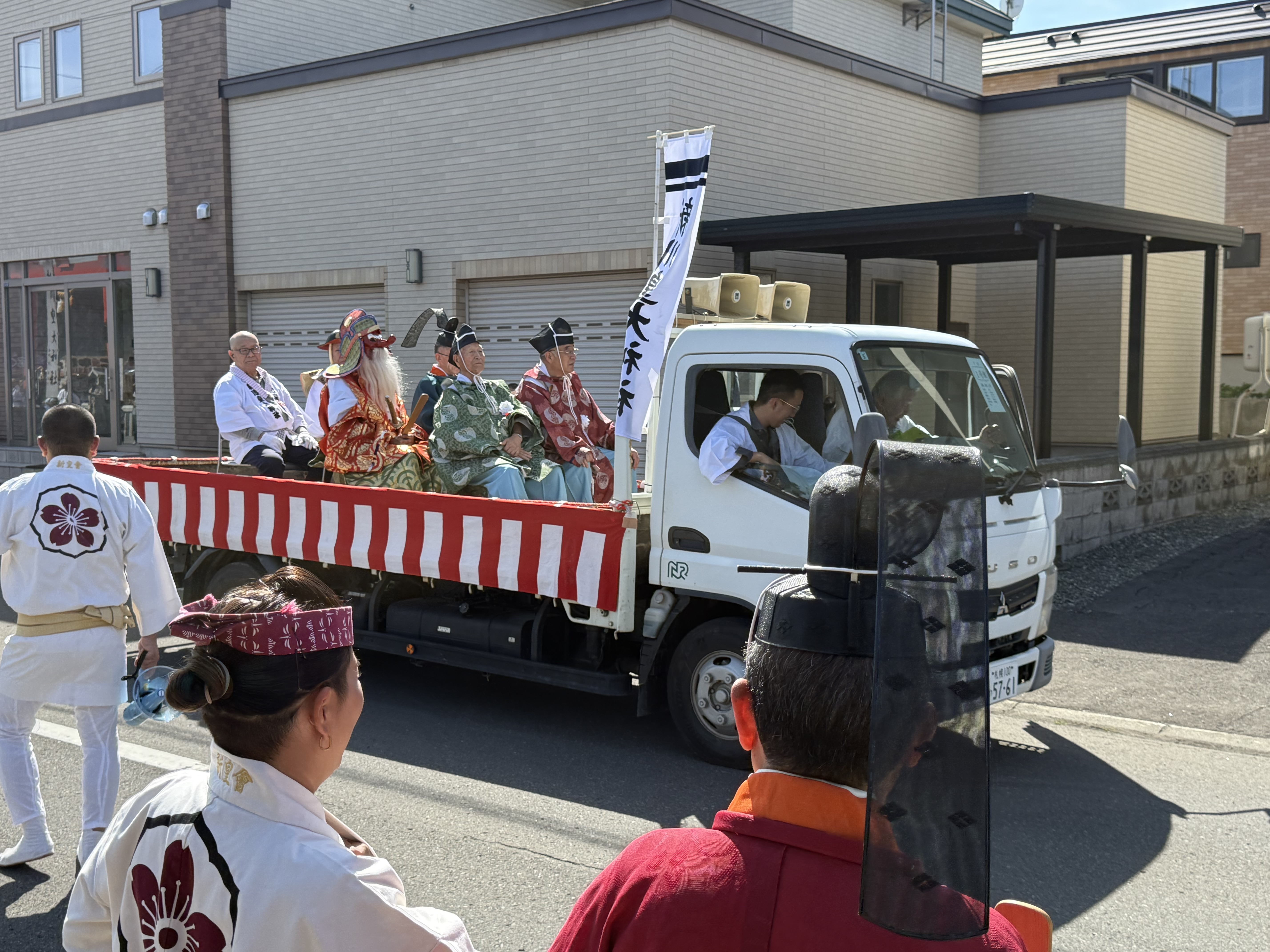 翌日の祭儀でも玉串奉奠させて頂きました。神輿渡御は久しぶりに天候にも恵まれ、宮出しの際には、北響太鼓の音がお祭りを盛り上げておりました。