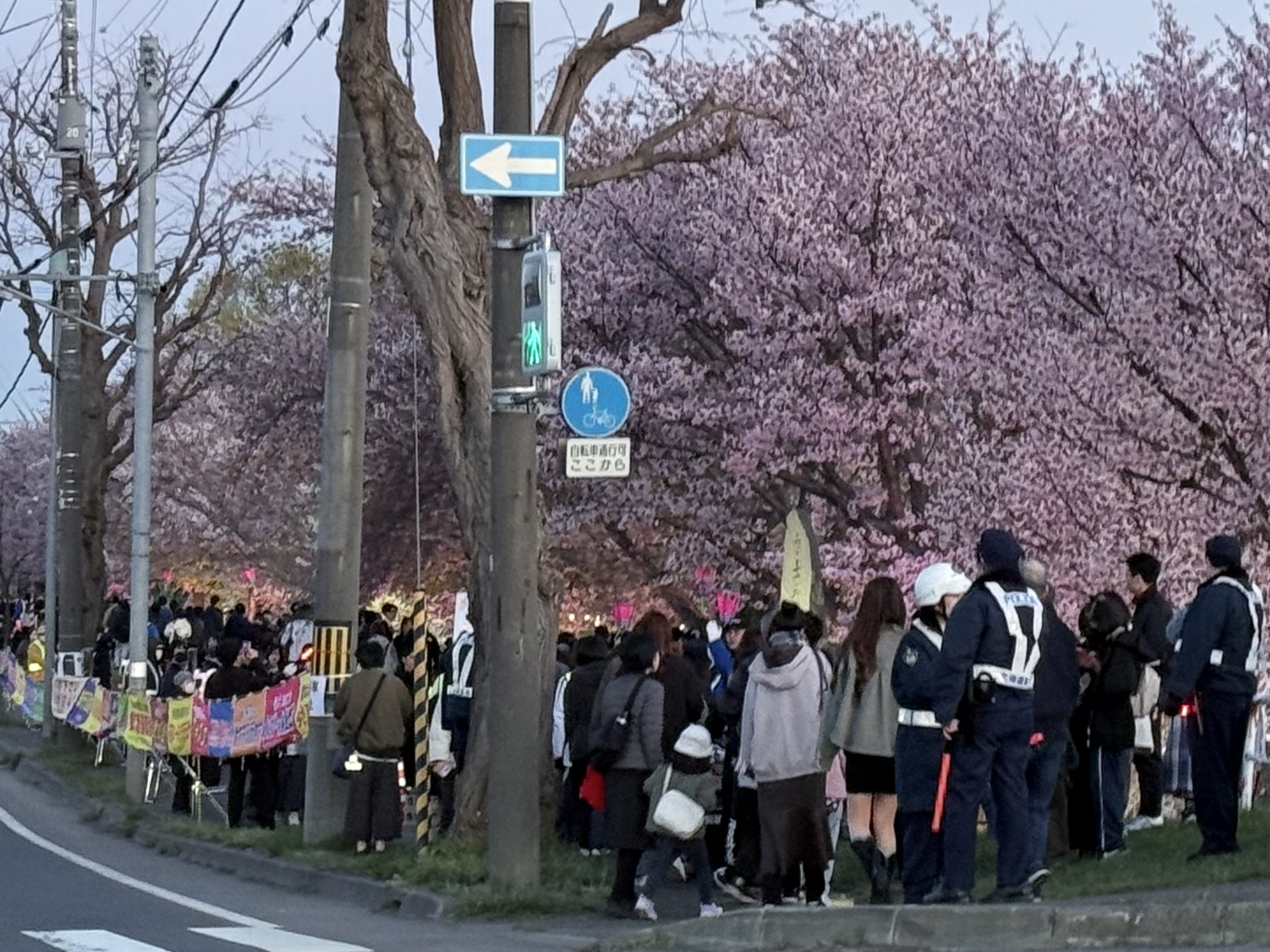 以前は地元の町内会の方々でひっそりとスタートしたイベントでしたが、テレビ・ラジオなどでの広報がしっかり出来たことにより、夜桜観覧者が急増したことへの対応が求められております。