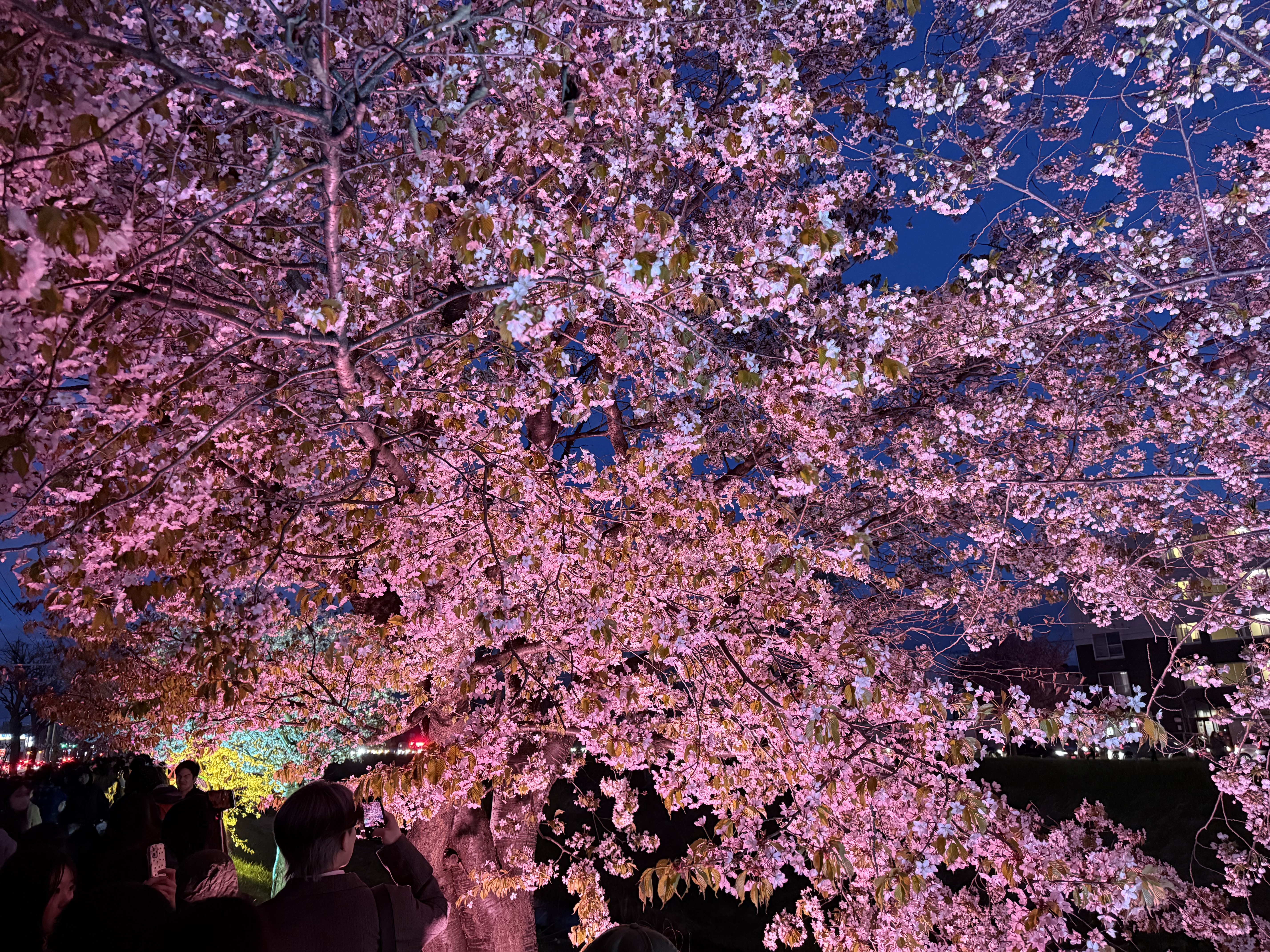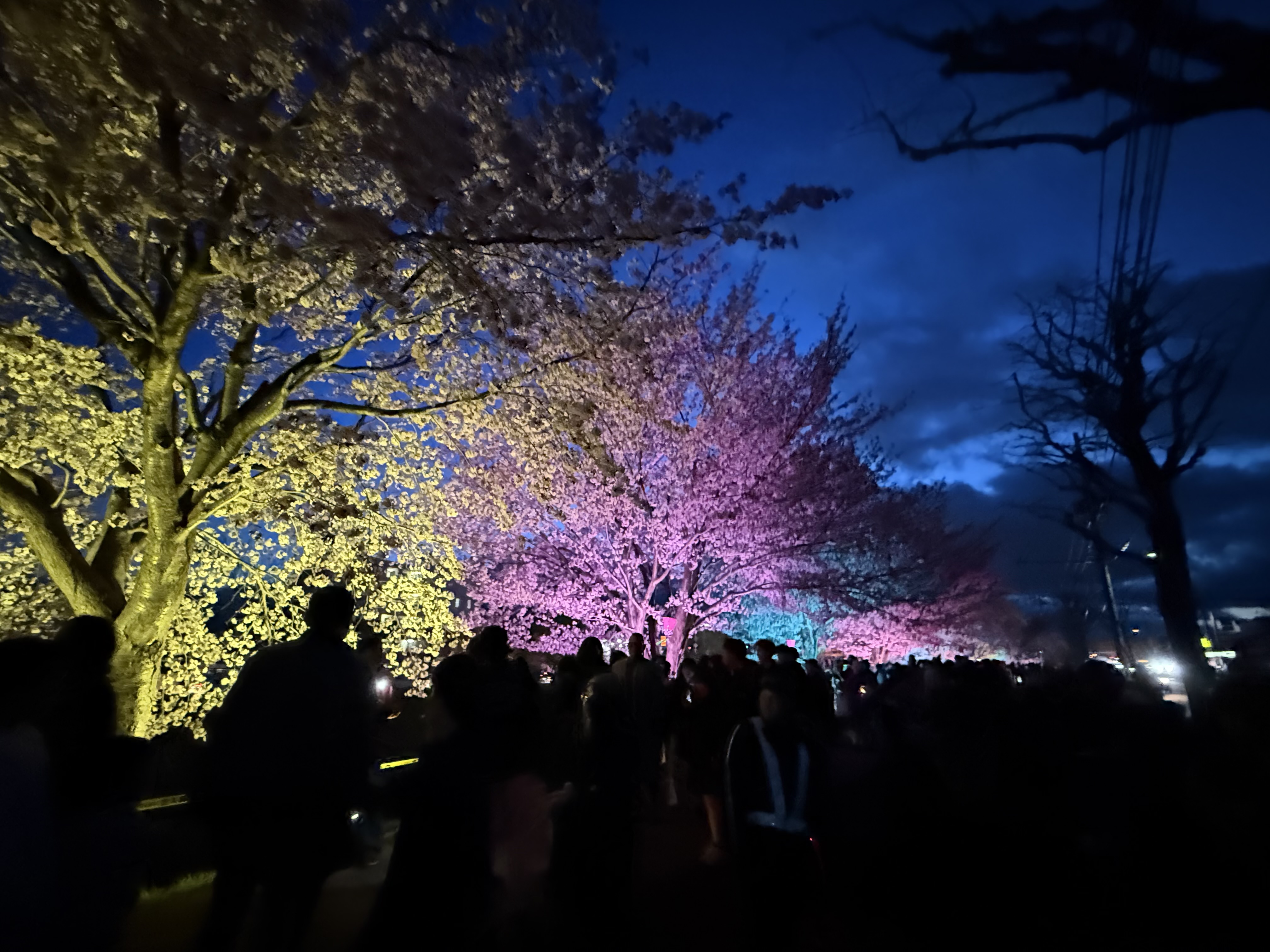 また、ライトアップされているエリアに人が集中しすぎて、人の流れも滞留していた個所が散見されました。個人的には今後ライトアップエリアを拡大して、受入れキャパを拡大しないと現状の観覧者数に対応しきれないようにも感じました。