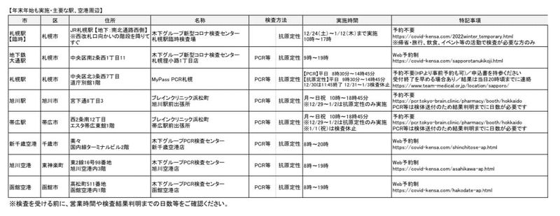 なお、年末年始に臨時設置される無料PCR検査場所・無料抗原定性検査場所(主要な駅・空港周辺)の詳細については画像資料を参照ください。