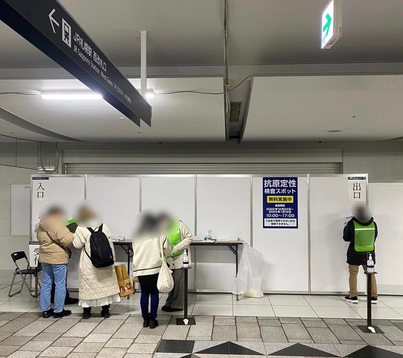 本日、JR札幌駅に立ち寄ると、西口改札口の真下辺りになる地点で無料抗原定性検査所が設置されておりました。