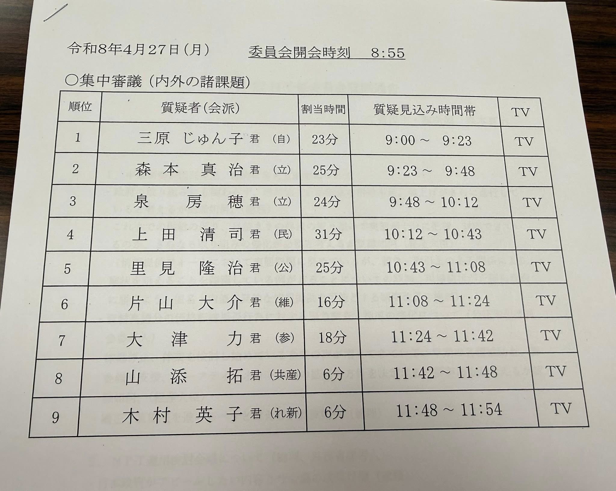 ホーム>政党・政治家>高木 まり (タカギ マリ)>テレビ中継入りの参議院予算委員会