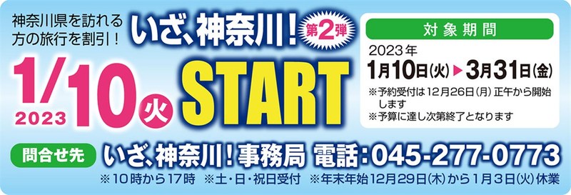 神奈川県を訪れる方の旅行を対象とした割引キャンペーン「いざ、神奈川!(第2弾)」を実施します - 神奈川県ホームページ (pref.kanagawa.jp)