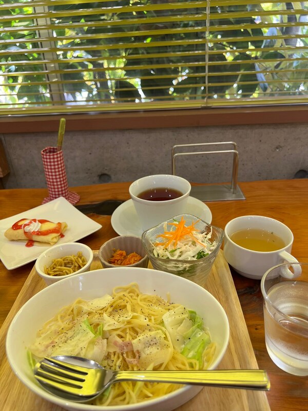 南彦根駅やプロシードアリーナに近い「カフェ夢工房if」でランチ😃💕春野菜のクリームパスタ、デザ...