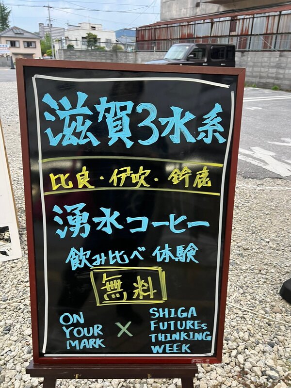 土日は、滋賀3水系(比良・伊吹・鈴鹿)潮水コーヒーの飲み比べが無料で体験できます。
