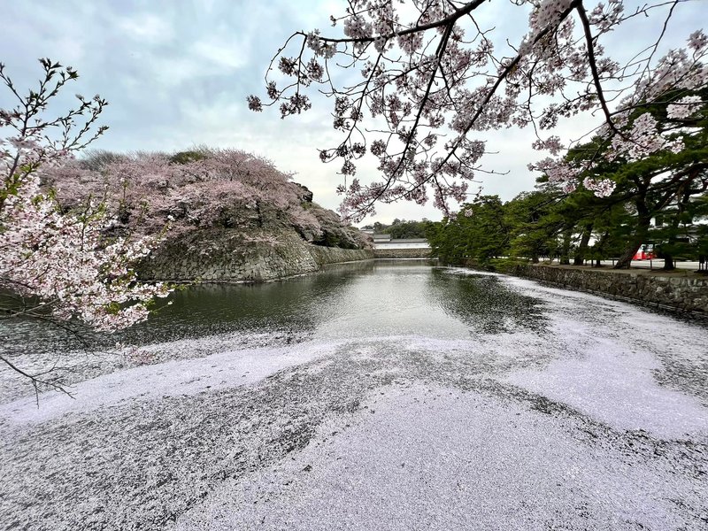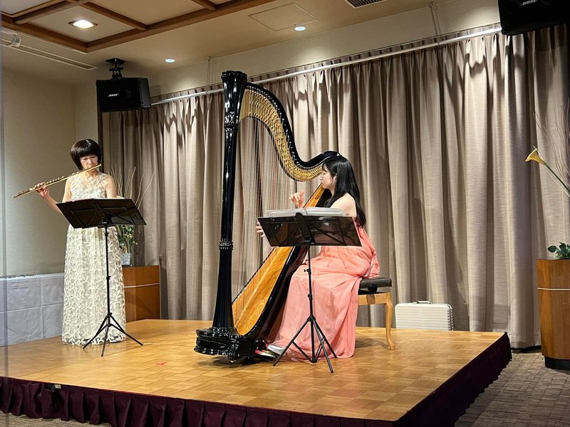 花筏とライトアップされた桜、彦根キャッスル リゾートアンドスパにおいて、井伊 亮子さんのフルートと大島さんのハープの素晴らしい音楽を楽しませていただきました。