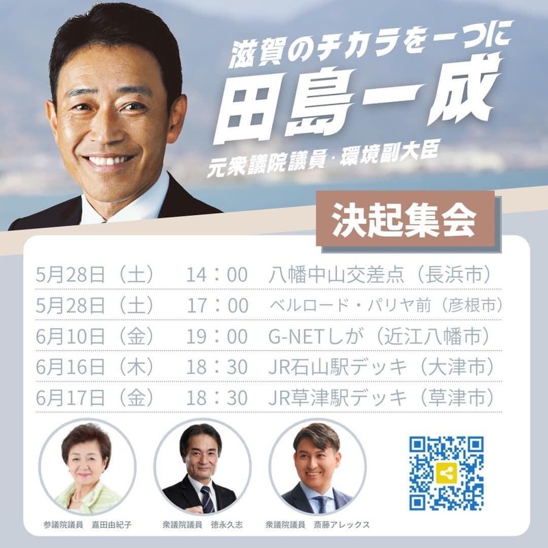 #田島一成 #街頭演説会 #パリヤさん前 #徳永ひさし衆議院議員 #斉藤アレックス衆議院議員 #嘉田由紀子参議院議員 #5月28日