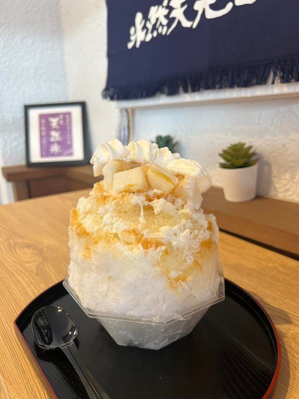 暑くて、「こにし本店」で日光の天然氷のかき氷🍧彦根梨のかき氷、美味しい😋💕(9/23までの土日祝のみ)