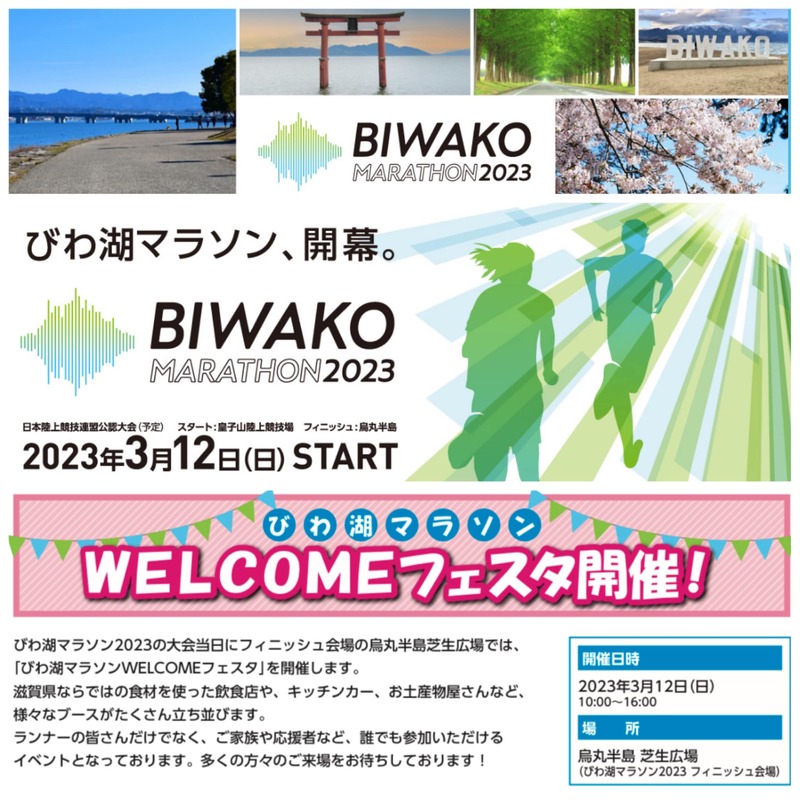 3/12(日)に開催されます「びわ湖マラソン」の開催同日に、一般の皆さんにもご参加いただける、「びわ湖マラソンWelcomeフェスタ」が開催されます。