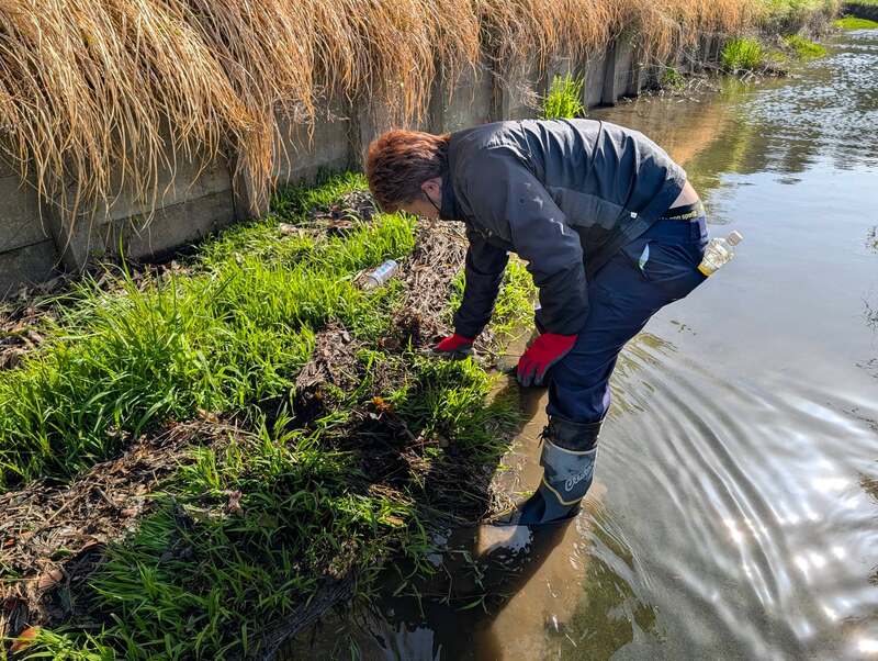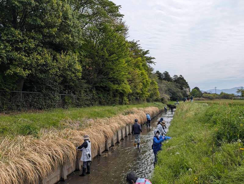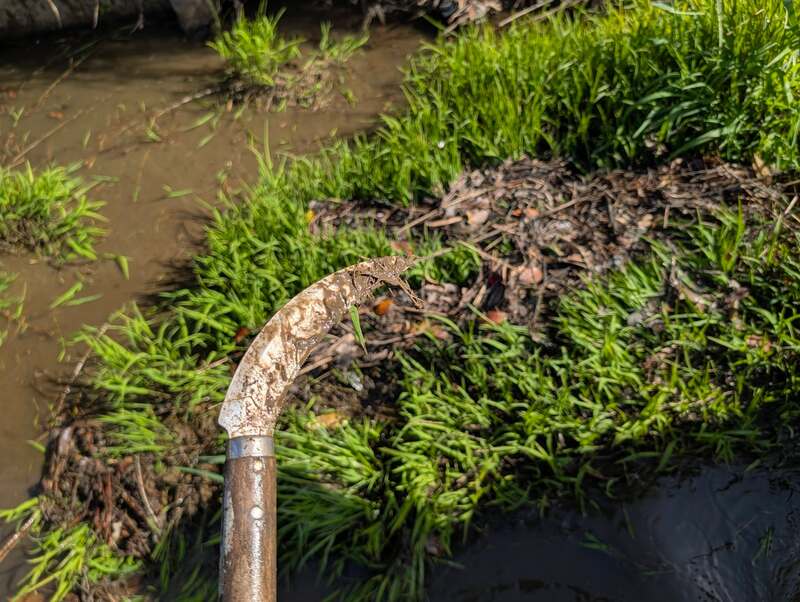 昨年と違い、水路底面のコンクリートが割れている箇所から雑草が水路内に繁茂している地点が数カ所有りましたので、こちらについては、スコップでなく鋸鎌で根っこを切断しながら除去。泥上げより、ここが結構大変でした。