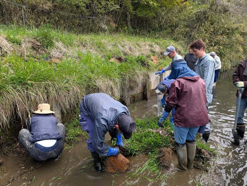 集落内農業用排水路の堆積土砂等の泥上げと、法面際の雑草等の除去。男性陣が泥上げ、女性陣は鋸鎌等での除草を分担して実施。