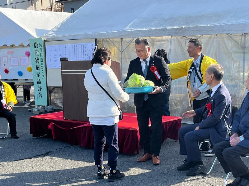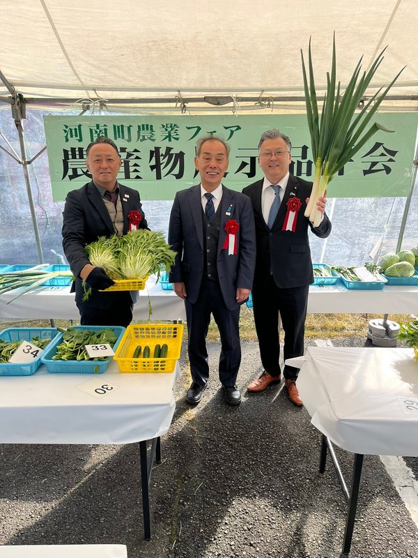 本日は、鈴木憲府議とともに『河南町農業フェアin多目的広場』の式典・品評会に出席させていただきました。