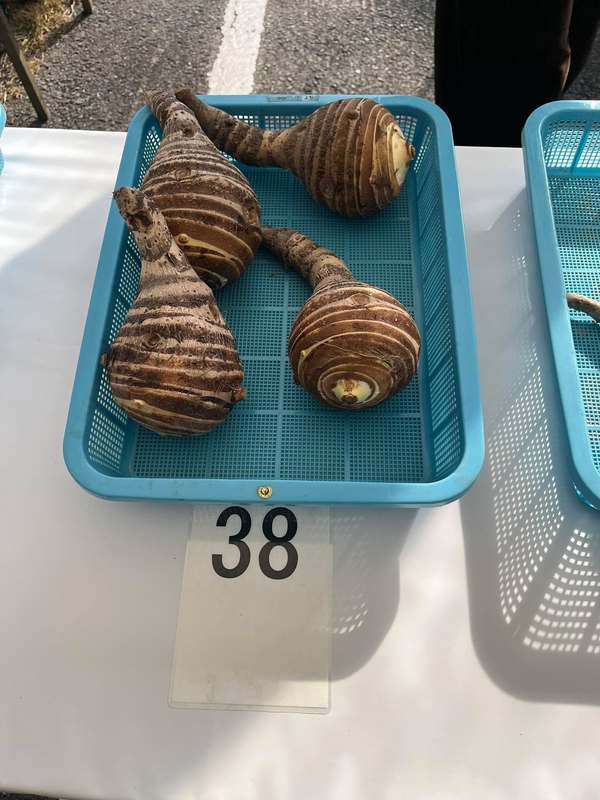 式典のあと、森田町長、鈴木府議と出展野菜を見させていただきましたが地元農家の皆様が丹精込めて栽培をされた農作物はどれも見事で圧巻でした。