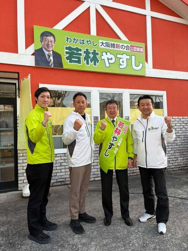ホーム>政党・政治家>うらの 靖人 (ウラノ ヤスト)>「林ふみたか」「若林やすし」「森下よしひと」の応援に駆けつけてくれました古川照人大阪狭山市長、...