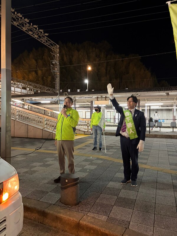 各陣営に激励へ行き最後に三日市町駅ロータリーで森下よしひと候補の応援演説を行いました。
