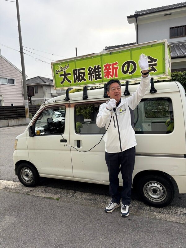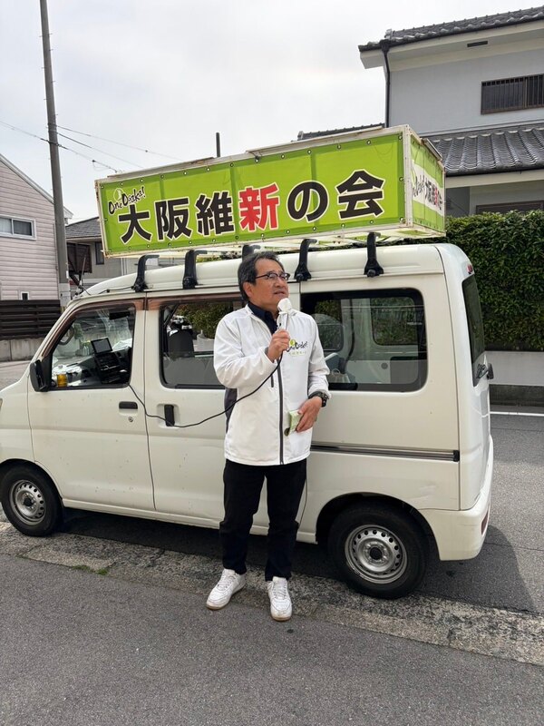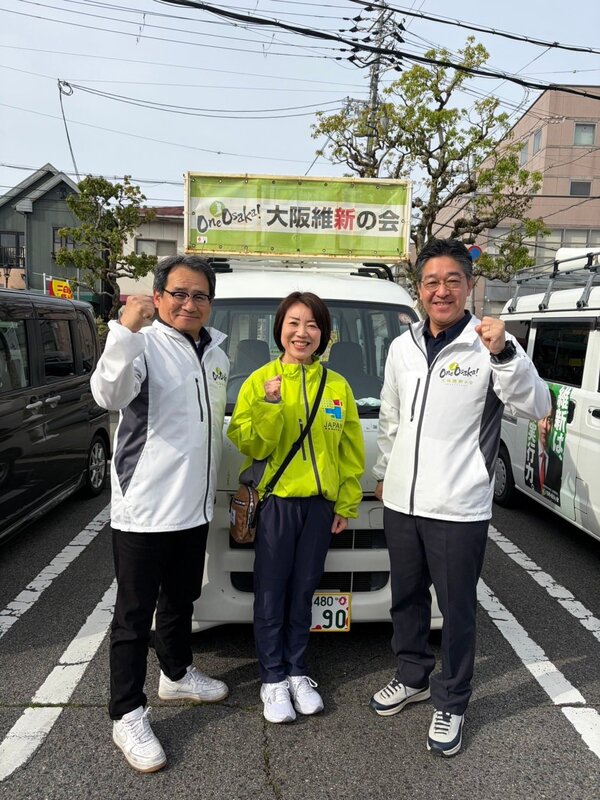おはようございます。 河内長野市議会議員選挙6日目 大阪維新の会公認「林ふみたか」「若林やすし」「森下よしひと」の応援に各地から来ていただいております。 山本真吾大阪府議会議員、中野学大阪狭山市議会議員、くすのき府議スタッフの方。 今日も1日、街宣活動頑張ってまいります。