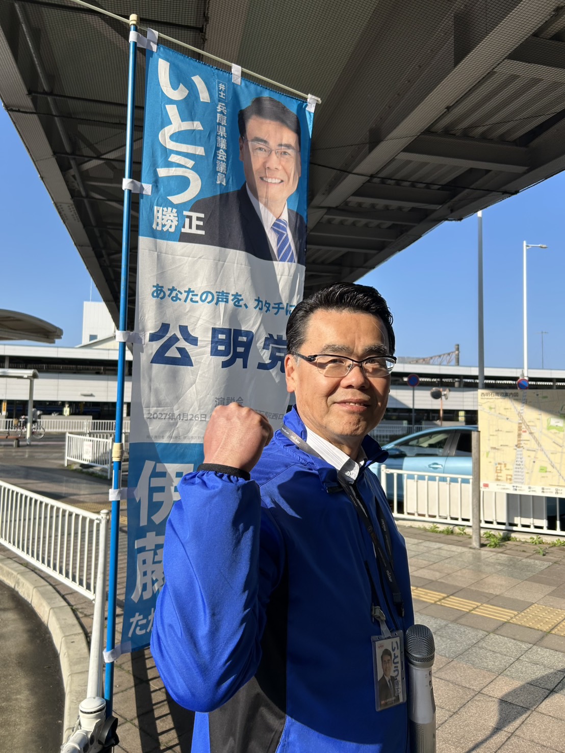 新年度になり1回目の朝のご挨拶。やっとダウン、極暖下着、手袋を卒業しました🙌真新しいスーツに身を包んだ新社会人(子ども達の同級生)の姿に思わず『がんばって❗️』とお声がけさせていただきました😃#いとう勝正 #兵庫県議会 #公明党 #明石市 #西明石