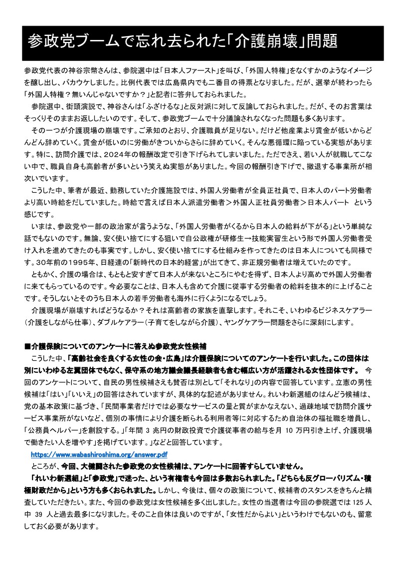 また、普通にれいわでも自民でも立憲でもいい。前回次点だった対抗馬の政治活動を支援するとか。
