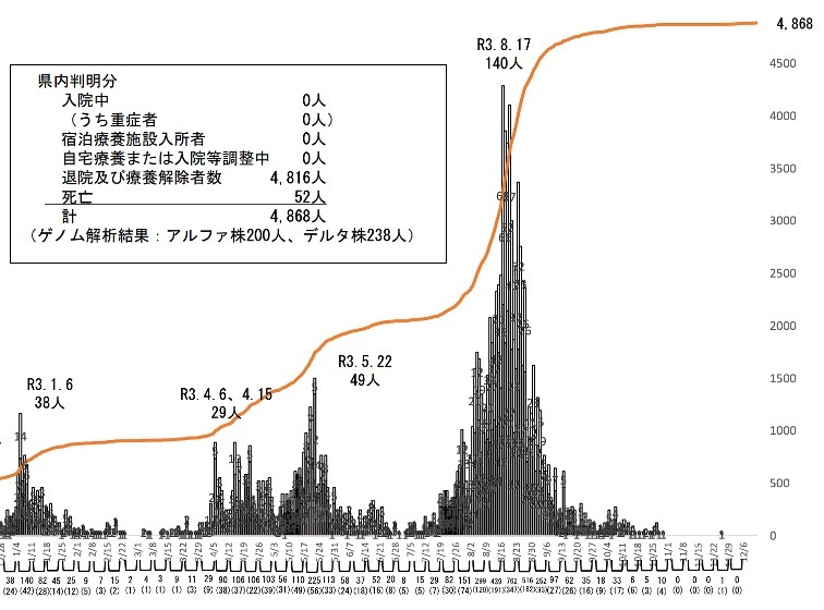 特に、第5波においては、医療機関が逼迫し、新型コロナに感染した方が自宅療養せざるを得ない深刻な状況を招くなど、富山県が初めて「まん延防止等重点措置地域」に指定される事態ともなりました。なお、これまでに累計で52名の方が命を落とされることになりました心よりご冥福をお祈りいたします。