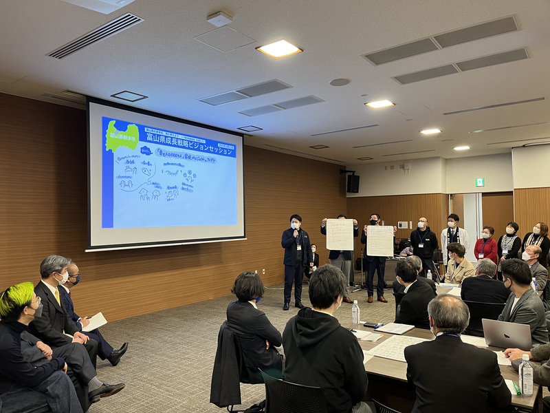 新型コロナ対策などの危機管理対応に追われ、どちらかといえば守勢にまわることの多かった1年であったとおもいますが、他方で、ご自身の目玉政策である「富山県成長戦略会議」を発足させ、精力的に取り組まれました。計7回に及ぶ成長戦略会議や6つの戦略ごとのワーキンググループでの議論、また知事が全市町村をまわり、地域の未来をともに語るビジョンセッションなど、これまでにない斬新な手法で議論が進められました。