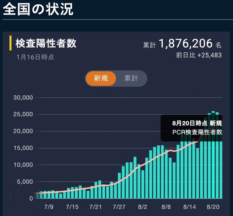 ピークとなる8月20日(25,975人)にかけて、感染が徐々に拡大しています。