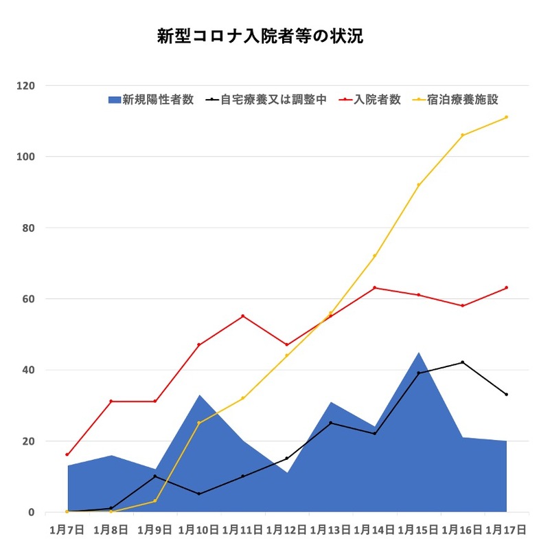 しかし、富山県だけ例外というわけはないと思いますので、近い将来、過去最多(147人)を連日、更新するという事態も時間の問題といえます。
