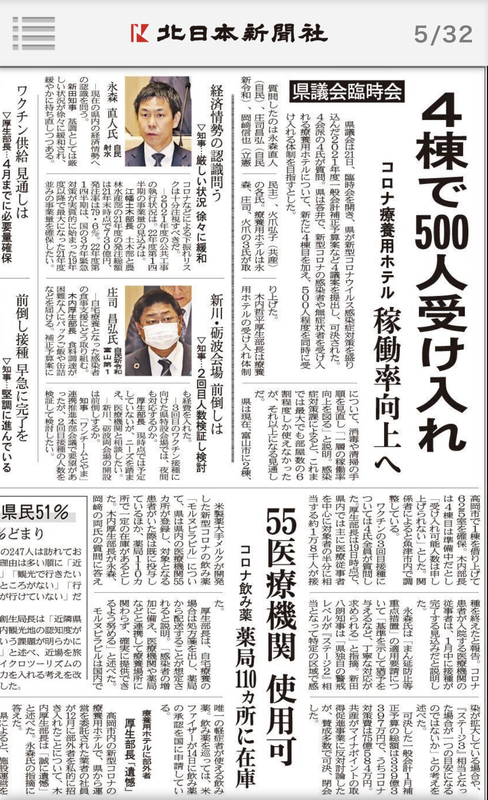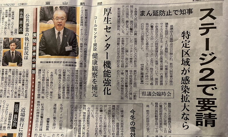 しかし、私には、(まだ富山県の感染者が比較的少ないこともあってか)、どこか緊迫感に欠けた答弁という印象を受けました。また、確保された入院病床数が本当に機能するのか?自宅療養の電話診療を担う医師と厚生センターなどとの連携がしっかり機能するのか?その不安を拭い去るには至りませんでした。
