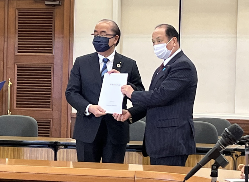 昨日(2月1日)、自民党議員会から新田知事に対し、大型施設整備の民間活力導入について、「PPP/PFI手法の導入に関する提言」を行いました。