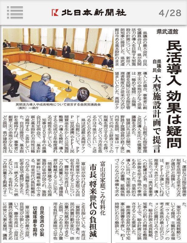 ホーム>政党・政治家>永森 直人 (ナガモリ ナオト)>【自民党議員会】富山県武道館など大型施設整備への民間活力導入についての提言