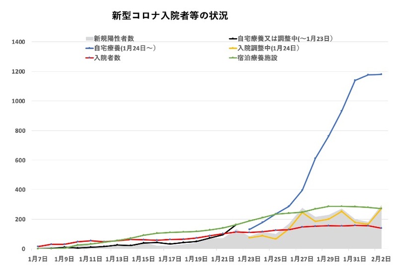 本日(2月2日)の富山県の感染者数は296人(無症状25、軽症271)と発表がありました。再び200人を超えて、過去最多を更新しました。