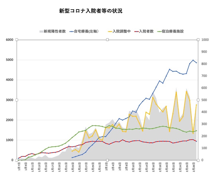 自宅療養者が増え、保健所や厚生センターの健康観察等は、なかなか機能していない面はあるかもしれませんが、医療が逼迫しているとまでは言えない状況です。