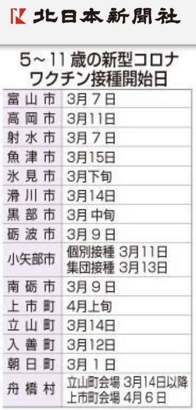 今朝の朝刊には、子どものワクチン接種について、県内の市町村ごとの状況が一覧で出ていました。