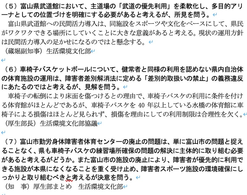 ホーム>政党・政治家>永森 直人 (ナガモリ ナオト)>【富山県議会報告一般質問に登壇】車椅子バスケの練習場所確保は半歩前進?