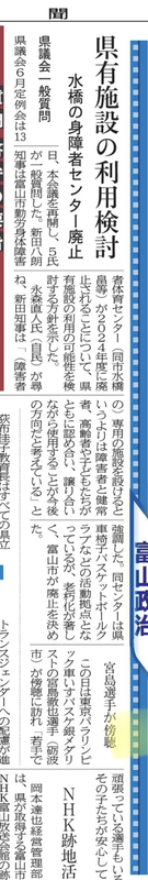 富山市の勤労身体障害者体育センターが廃止されることになり、車椅子バスケットチームの練習場所がなくなる問題についてです。