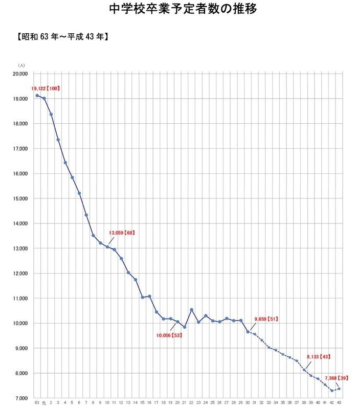 他方で、令和5年度を乗り切ったとしても、令和6年度以降も減り続ける中学卒業者数への対応に県教委は悩まされ続けることになることは必至です。