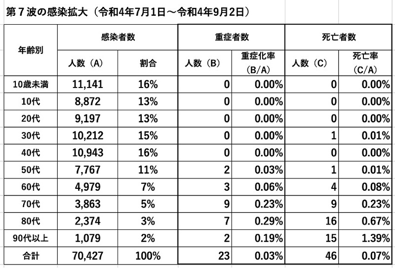 【第7波(令和4年7月1日~9月2日)の感染者の状況】