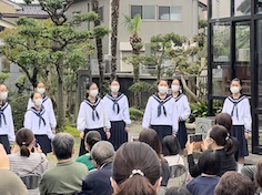写真は昨年秋に行われた地元イベントで野外で合唱を披露してくれた中学生の子ども達です。