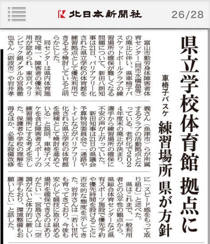皆さん、1年ほど前に、「富山市勤労身体障害者体育センター(富山市水橋)」が2024年度末に廃止されることが決まったことに端を発し、車椅子バスケットボールのクラブチームの練習場所確保の問題が起きたことを覚えていますか?