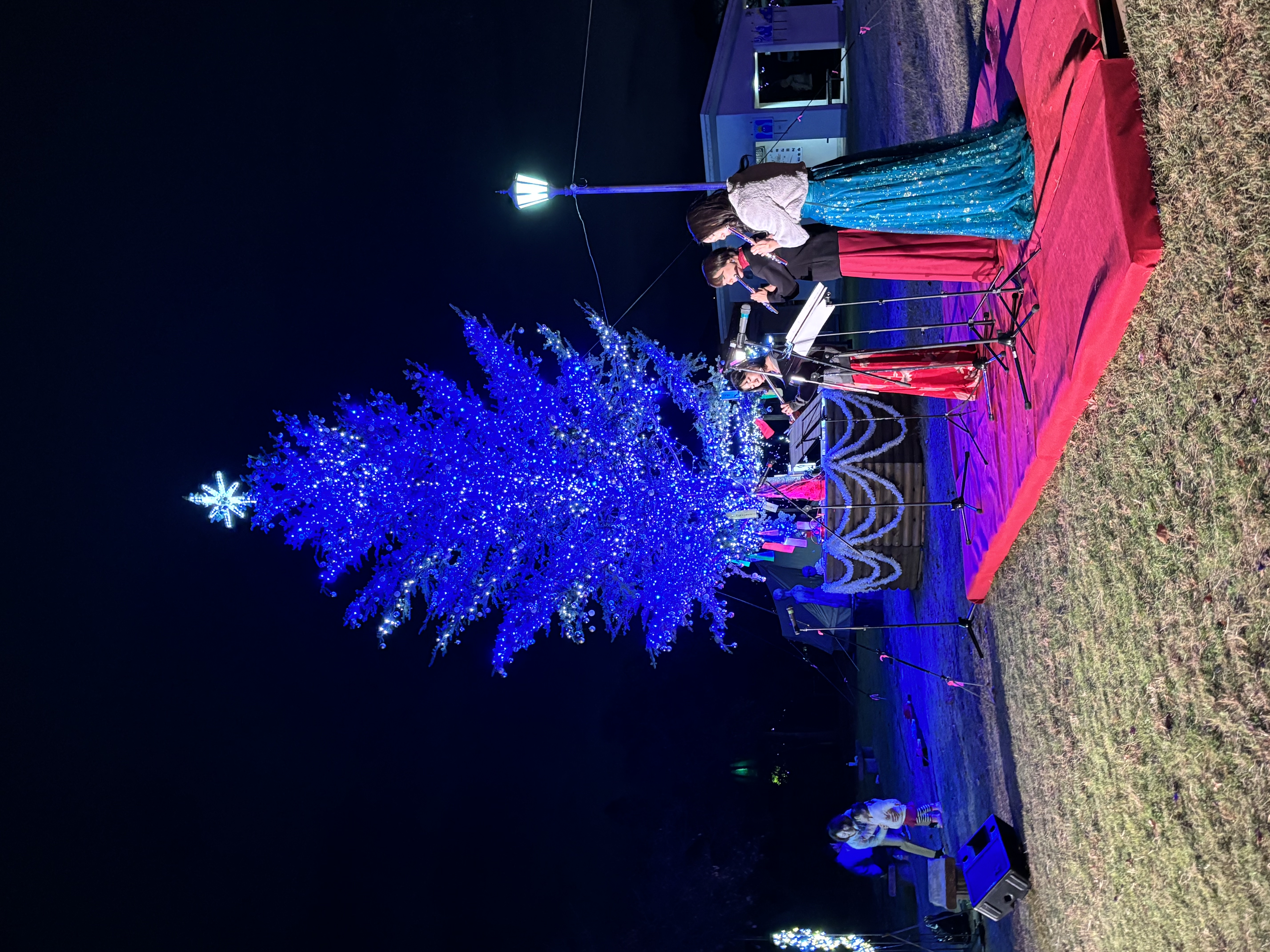点灯して最初のイベントはトリオフルールさんのフルート三重奏。ツリーのもと美しい音色が響きました。