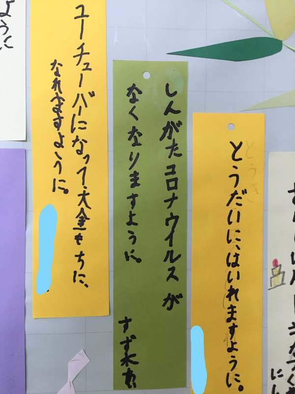 7/8(木)長女の保護者懇談会があって、小学校へ行ってきました。 勉強も人間関係も大きな問題はないとのことで、親としてはとても安心しました。 で、廊下に貼ってあった七夕の願いごと。 いろんな意味で「お前ら本当に小2か?」っていう願いが並んでいます。 私が7歳のころって、こんなんやったかなあ・・・。