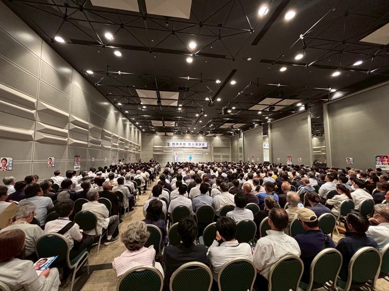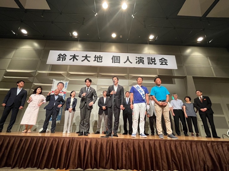 7月14日(月)に参議院議員候補の鈴木大地さんの個人演説会を、私の地元である江東区で開催いたしました。会場には750名を超える方々においでいただきお話を聞いていただきました。