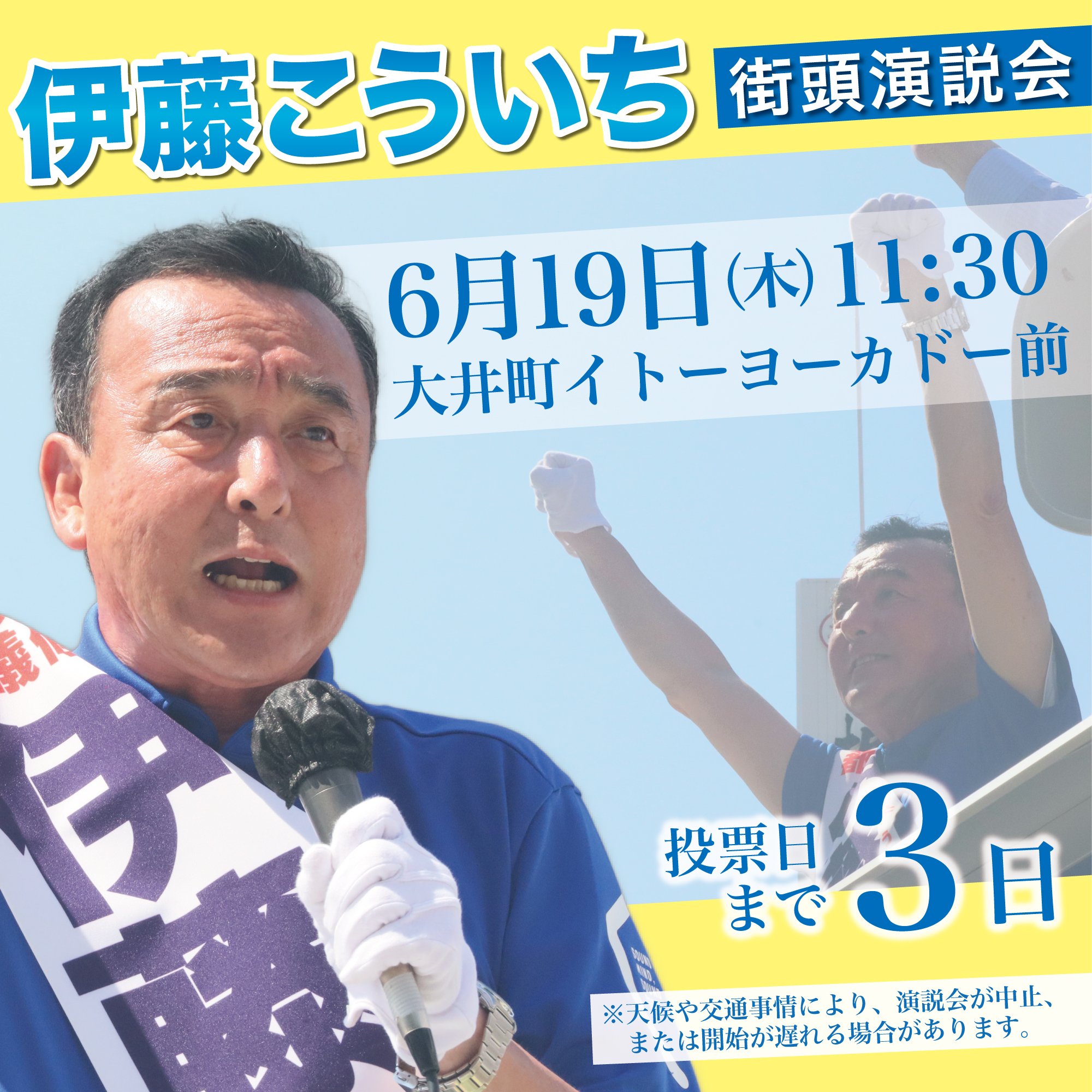 ホーム>政党・政治家>伊藤 こういち (イトウ コウイチ)>【都議選 品川・伊藤こういち街頭演説会】本日は大井町駅前にて!