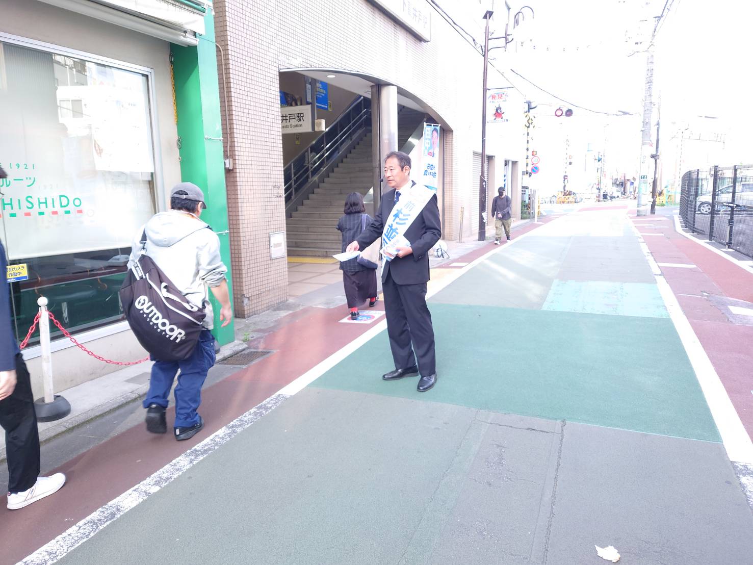 本日は7時~8時30分に下高井戸駅で街頭活動をしました。「田中さんが打ち出してる高井戸の下りインター実現してくれよ!」